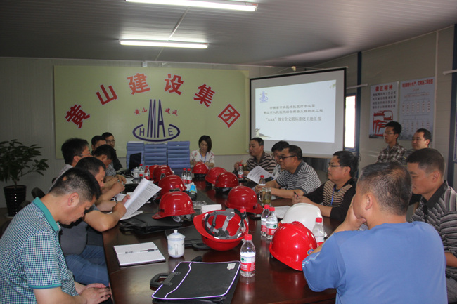 2015年5月8日,黃山市人民醫(yī)院病房綜合樓新建工程嚴(yán)陣以待,喜迎省建設(shè)廳安全協(xié)會(huì)以李德俊為組長(zhǎng)的“AAA安全文明標(biāo)準(zhǔn)化” 驗(yàn)評(píng)組一行來我工地檢查指導(dǎo)。