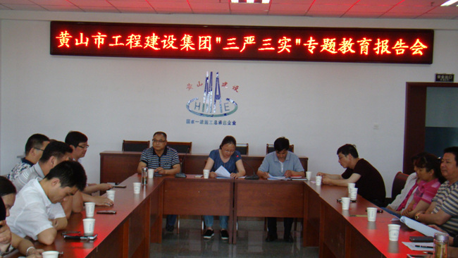為學習貫徹落實中央、省委在縣處級以上領導干部中深入開展“三嚴三實”專題教育座談會精神,5月28日下午,黃山市工程建設集團“三嚴三實”專題教育報告會在公司二樓會議室舉行。會議由集團黨總支書記吳春生主持。集團公司班子成員,各黨支部書記、委員,全體黨員、入黨積極分子共50余人參加會議。