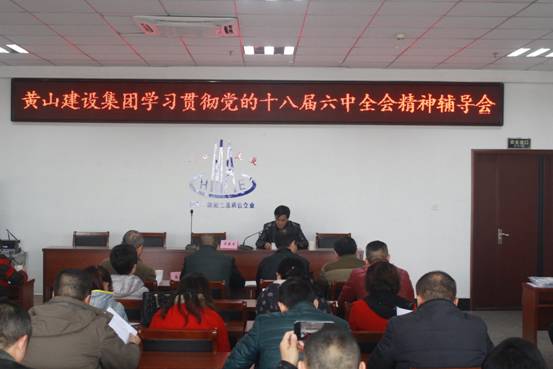 12月6日下午,黃山建設集團召開學習貫徹黨的十八屆六中全會精神宣講提綱輔導會、黃山市工程建設集團總支委員會黨員暨換屆選舉大會。集團黨總支書記吳春生主持會議,班子成員、全體黨員、預備黨員近60余人參加會議。